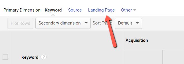 Click on Landing Page as the primary dimension.